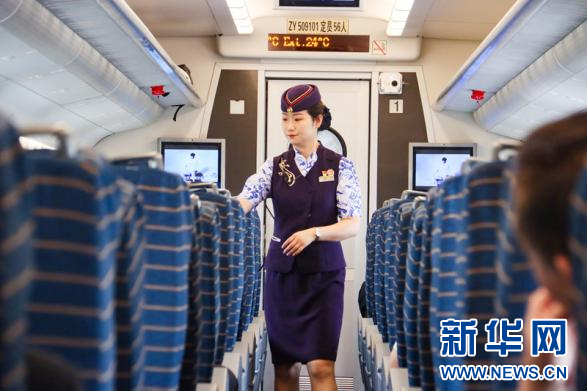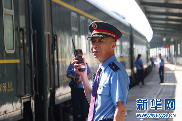 7月28日,兰州客运段职工在兰州西开往武威东站的列车上巡视车厢。