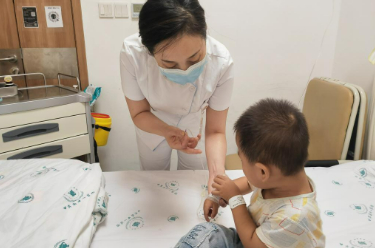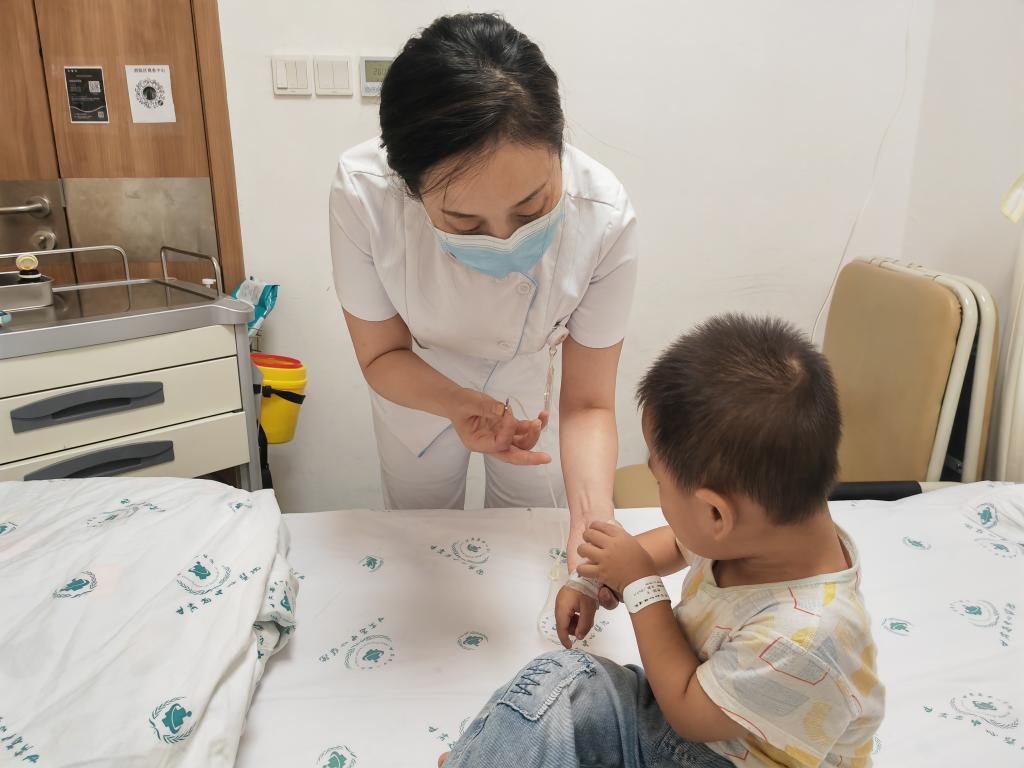9月10日,甘肃省妇幼保健院(甘肃省中心医院)护理人员为一名2岁脉管畸形儿童静脉输液。新华社记者梁军 摄