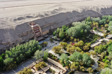 这是2023年4月25日拍摄的莫高窟窟区(无人机照片)。新华社记者 陈斌 摄