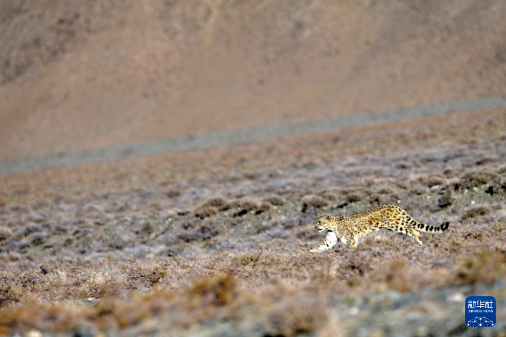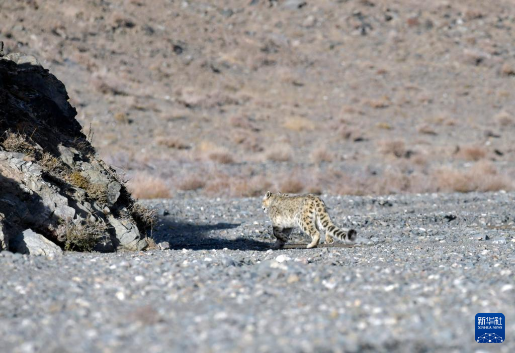 这是10月24日在甘肃省阿克塞哈萨克族自治县阿勒腾乡拍摄的雪豹。新华社发(高宏善 摄)