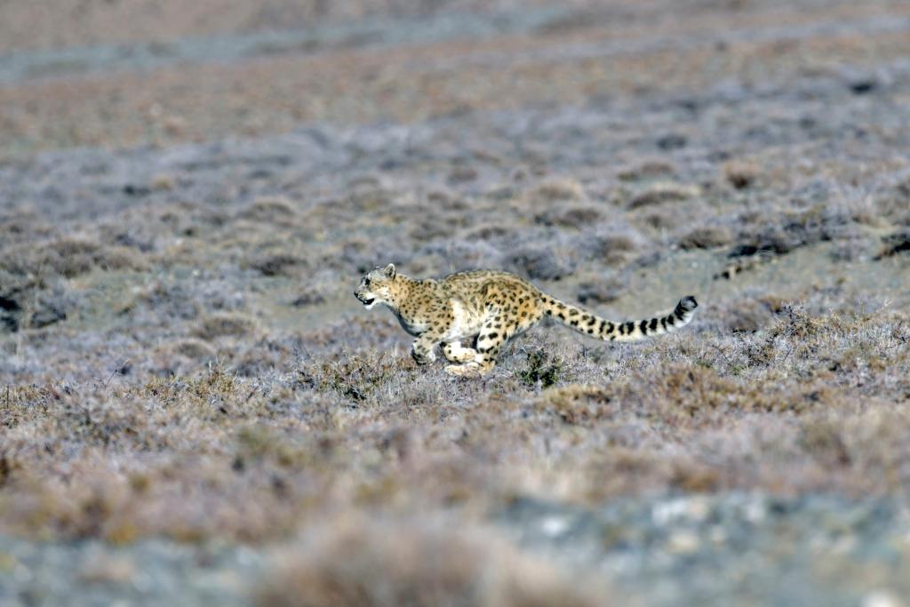 10月24日,被誉为“雪山之王”的雪豹在甘肃省阿克塞哈萨克族自治县阿勒腾乡境内高原现身。这只雪豹在一处高山裸岩下的草丛地带活动觅食,发现人类后很快奔跑上山,离开人们的视线。