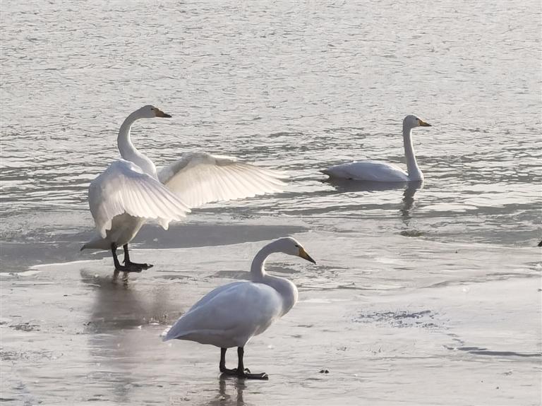 初冬时节,一群来自西伯利亚的野生白天鹅又一次如约来到兰州市达川镇三江口天鹅滩越冬。近日,大量游客追随着天鹅的身影加入到“三江口天鹅滩西北冬日游”的队伍中,与天鹅合影成为人气爆棚的旅游享受。为此,兰州旅游服务中心专线开通了三江口天鹅滩旅游直通车,方便市民游览;兰州铁路局根据列车运行线路,整理出两条能与天鹅同框的绝美路线,旨在让游客拍出翩翩起舞的天鹅与飞驰而过的列车惊艳同框的画面。