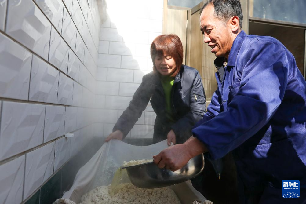 1月5日,村民在庆阳市合水县西华池镇唐旗村一家豆腐作坊制作豆腐。新华社记者 郎兵兵 摄