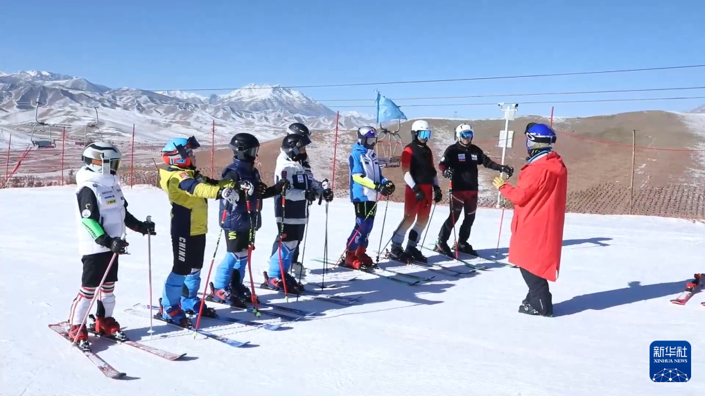孙铭在雪场参加为期两周的滑雪训练,他的滑雪教练是来自东北的王旭有。作为滑雪项目国家高级教练、国家级裁判,自2019年以来,王旭有一直在甘肃开展滑雪教学、裁判培训等冰雪运动推广活动。