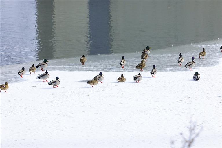 绿头鸭更是这片水域的常客,它们数量众多,绿色的头部在阳光下闪耀着光芒。它们时而安静地浮在水面,时而迅速地游动,展现出活泼可爱的一面。