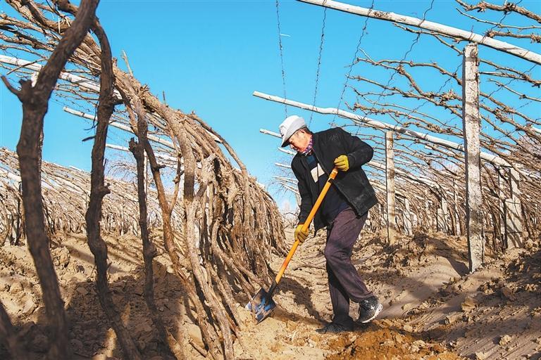 敦煌市阳关镇村民挖葡萄藤。新甘肃·甘肃日报通讯员 王斌银