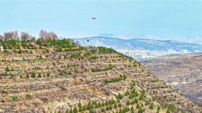 4月8日,通渭县城区面山绿化义务植树活动在平襄镇温泉村北山展开,全县干部职工挥锹铲土,为通渭生态建设再添新绿。新甘肃·甘肃日报通讯员 张 赛