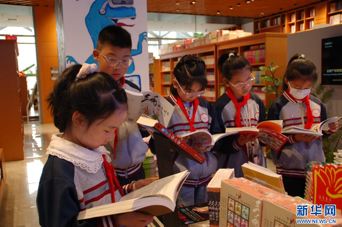 学生们在西北书城翻阅书籍。新华网发(张嘉悦 摄)