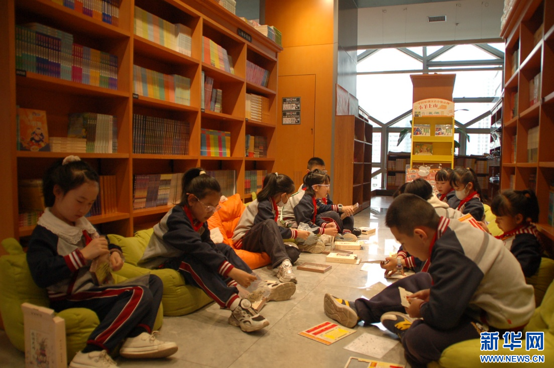 学生们在西北书城参加手工拼图活动。新华网发(张嘉悦 摄)