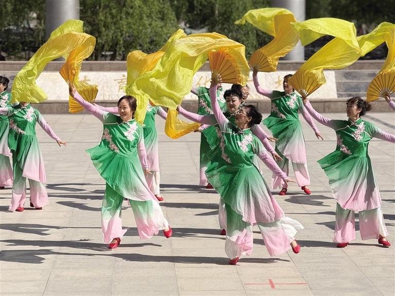 5月10日,2025兰州马拉松体育嘉年华系列活动暨健身秧歌、健身舞展演活动在兰州体育公园文化广场举行。
