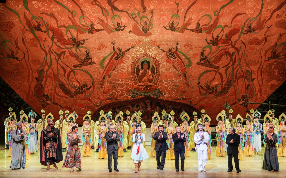 5月18日,当悠远而深情的主题音乐在北京国家大剧院歌剧院穹顶久久回荡时,舞台上的“莫高窟飞天”也定格于最后一抹鎏金,观众席爆发出雷鸣般的掌声,为期3天的25周年纪念版《大梦敦煌》演出圆满落幕。总编导陈维亚、作曲张千一、编剧赵大鸣、舞美设计高广建、第一代“月牙”刘晶更是怀着激动的心情再聚一堂,眼含着热泪为这部中国舞蹈艺术精品献上了最诚挚的生日祝福。