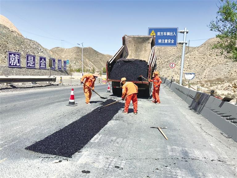 近期,兰州公路段集中人力、机械对辖养的G109线K1623+988-K1642+540路段坑槽、龟网裂、沉陷等病害进行集中修补,努力为群众出行提供良好的道路通行环境。