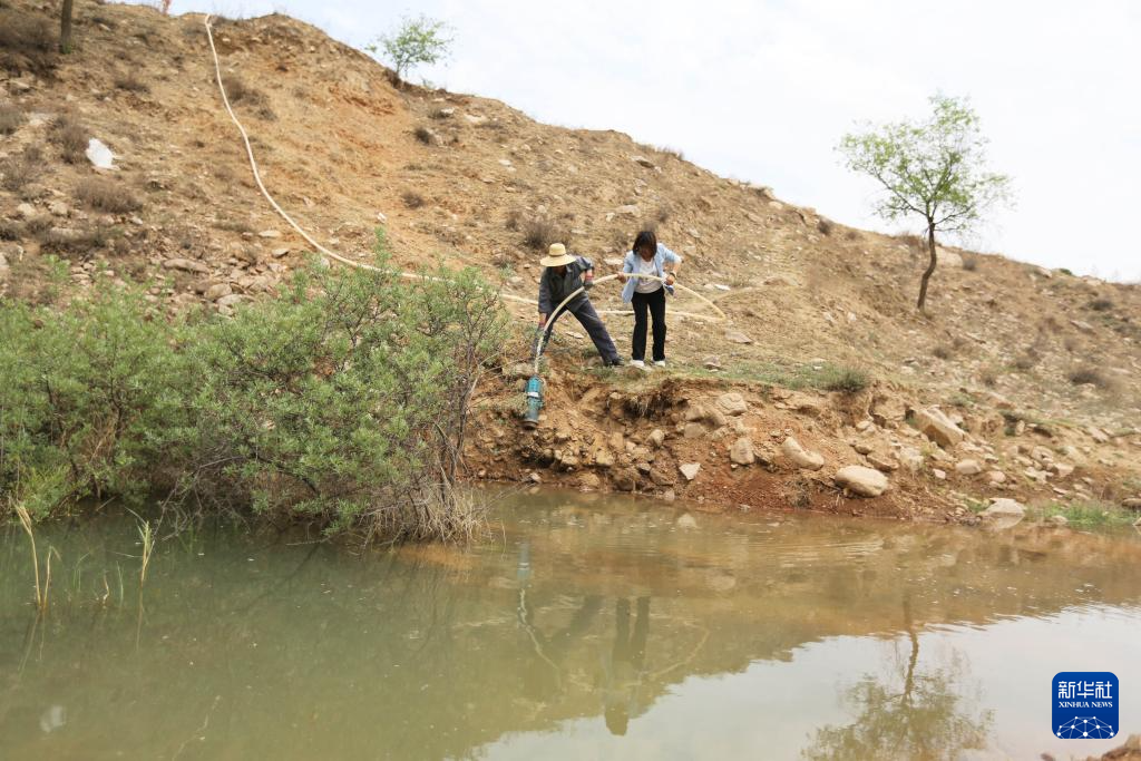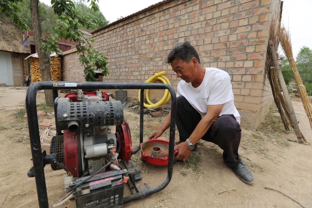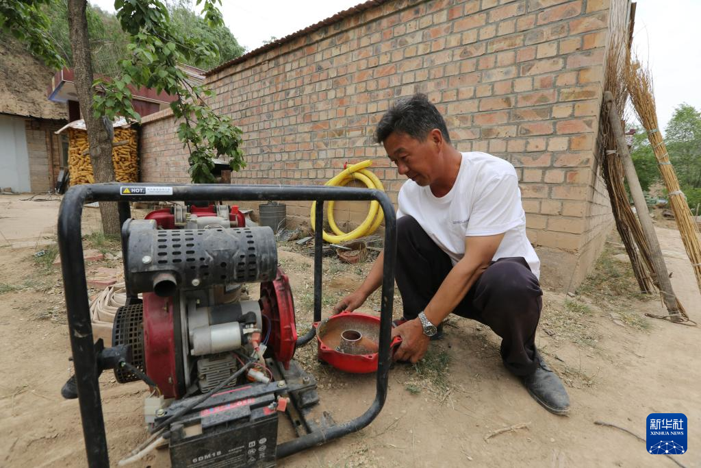 5月21日,在甘肃省定西市通渭县寺子川乡,农民检修抽水设备。新华社发(王克贤 摄)