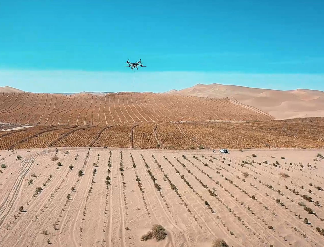 目前,甘肃治沙已从人海战术,向高科技与机械化并举转型。在甘肃省酒泉市金塔县,当地积极探索智慧治沙模式,北斗定位精准导航,无人机运草成为治沙工作中的“空中尖兵”,智能滴灌系统为沙漠植被生长提供保障……如今,全县林地面积达到158.2万亩,在茫茫沙海筑起了一道生态安全屏障。这里只是甘肃防沙治沙的一个缩影,从八步沙林场的接续奋斗,到各地防沙科技的创新实践,甘肃正以坚韧与智慧,让沙漠奇迹不断上演。(王生元、童张伟、江德智)