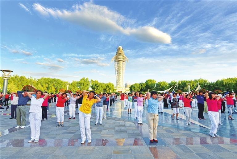 清晨的东湖旅游景区、迎宾湖旅游园区、雄关广场等地,鲜花娇艳,绿植葱郁,空气中弥漫着清新的气息。市民早早来到这里,舒展筋骨,强身健体。