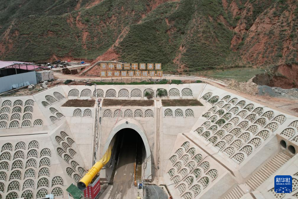 这是已经贯通的兰合铁路黄家岭隧道(6月18日摄,无人机照片)。新华社记者 陈斌 摄