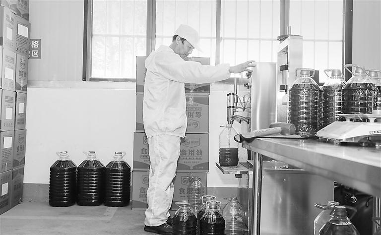 在中山镇蔚文村占地800平方米的“强村”公司车间内,全自动榨油机高效运转,胡麻油与菜籽油缓缓流入储油罐。
