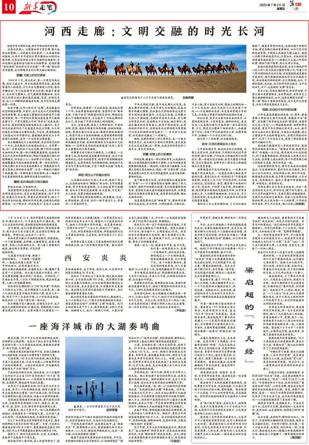 自古以来,河西走廊的命运,和世界局势、中原王朝兴衰紧密联系,在世界地理、世界历史上都占据独特的地位。如今,这条走廊因为共建“一带一路”倡议又重新活跃起来。这不是历史的重复,而是文明在更高起点上生长。