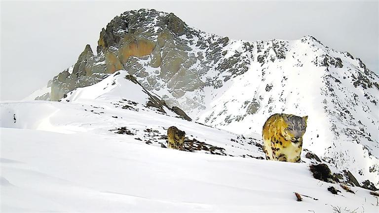 甘肃尕海则岔自然保护区出现的雪豹。甘肃尕海则岔自然保护区管护中心供图