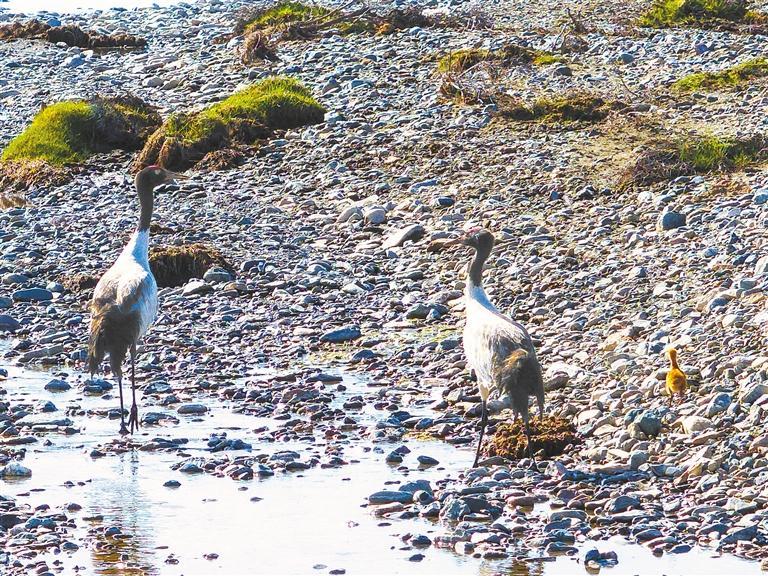 近日,甘肃祁连山国家级自然保护区管护中心隆畅河自然保护站工作人员捕捉到了国家一级保护动物黑颈鹤“一家三口”的珍贵影像,为祁连山生物多样性保护再添新彩。