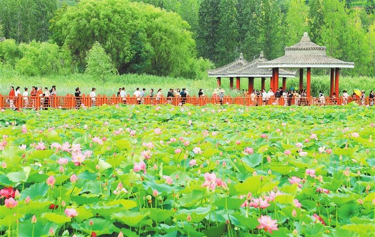 西和县晚霞湖景区荷花进入盛花期-新华网