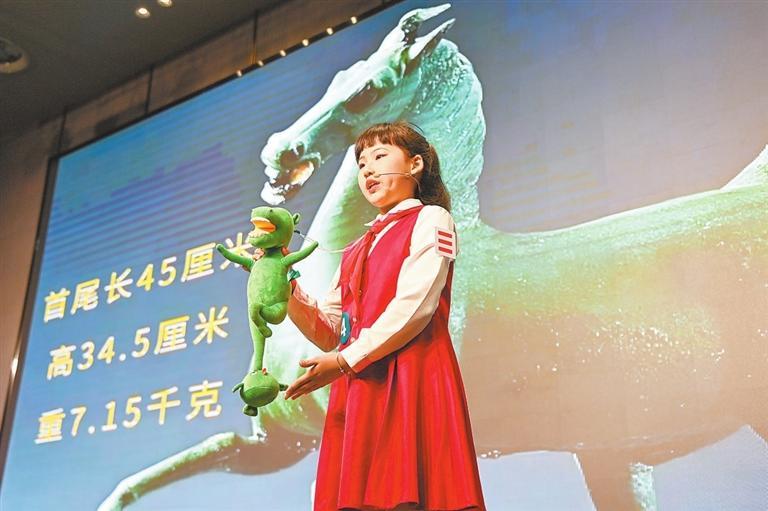 代表甘肃省博物馆参加小讲解员大赛的马钰雅,有着两年的讲解经验,她对“马踏飞燕”等镇馆之宝已很熟悉,总能用生动的故事串联起文物背后的历史。