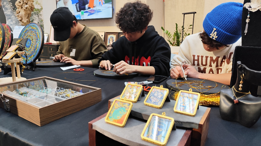 与舞台上的动态展演相得益彰的,是园区创新设立的互动式非遗体验区。这里,古老的非遗技艺以更亲切、更直观的方式融入现代生活场景。琳琅满目的非遗文创产品,独具匠心,既有传统的韵味,又不乏现代审美趣味,吸引了大量市民驻足欣赏、流连忘返。
