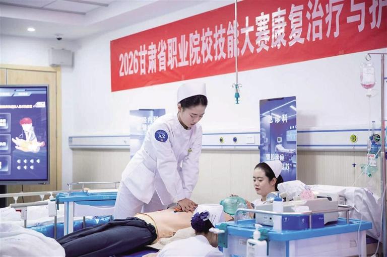 12月23日下午,2026年甘肃省职业院校技能大赛甘肃卫生职业学院赛点正式开赛。来自全省各中高职院校的136支参赛队伍、489名选手齐聚兰州新区,将在“医药生产与经营”和“康复治疗与护理”两个赛道上展开技能切磋。