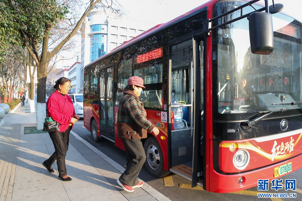 1月17日,群众在甘肃省陇南市两当县乘坐免费公交出行。新华社记者 郎兵兵 摄
