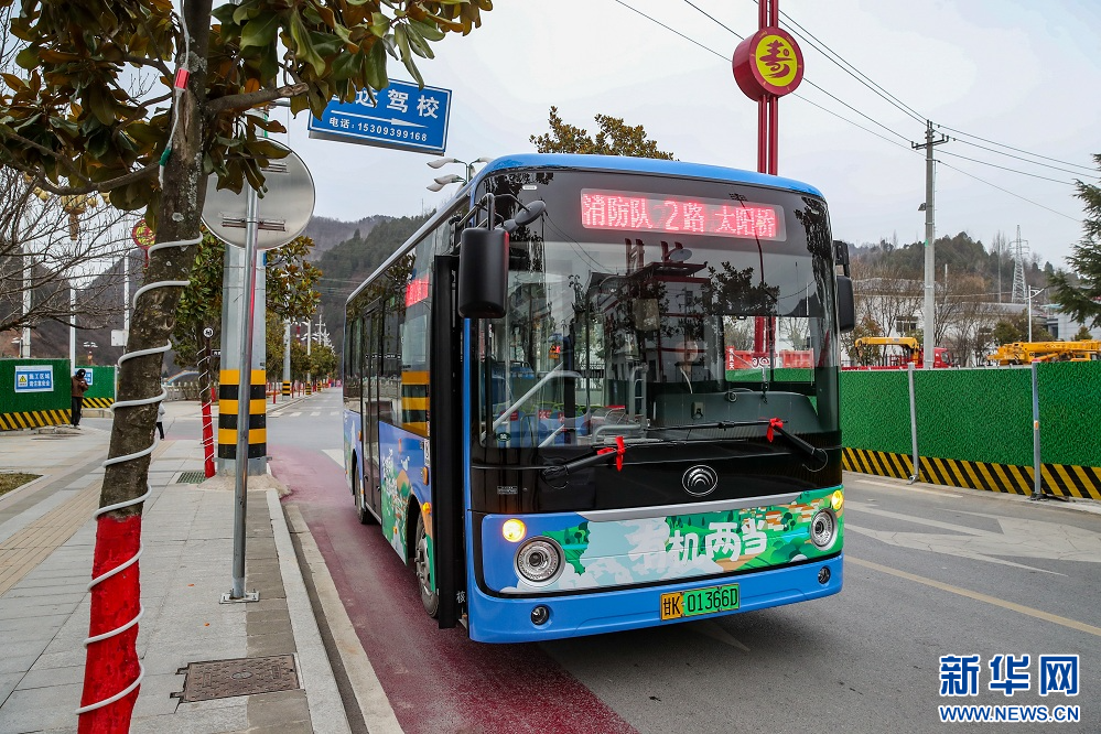 1月18日,一辆免费公交在甘肃省陇南市两当县的街道上。新华社记者 郎兵兵 摄