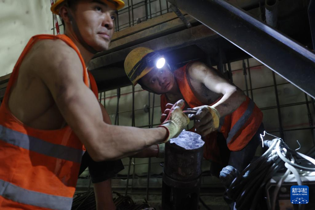 1月27日,建设者在兰合铁路西固隧道内施工。新华社记者 陈斌 摄