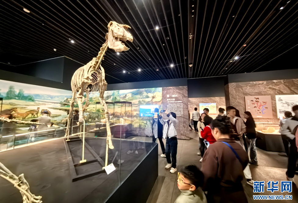 游客参观埃氏马骨架化石。新华网(王生元 摄)