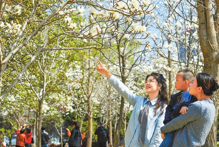 兰州黄河楼景区玉兰花迎来最佳观赏期。新甘肃·甘肃日报记者 裴强