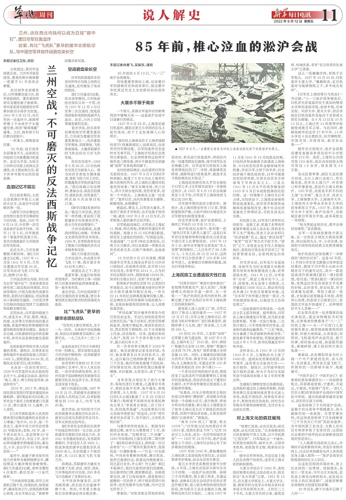 85年前,抗日战争全面爆发不久,远在西北内陆的兰州就遭遇日机轰炸。此后几年里,为保卫兰州和古丝路上的西北交通线,壮士碧血染长空,留下许多可歌可泣的抗战故事。